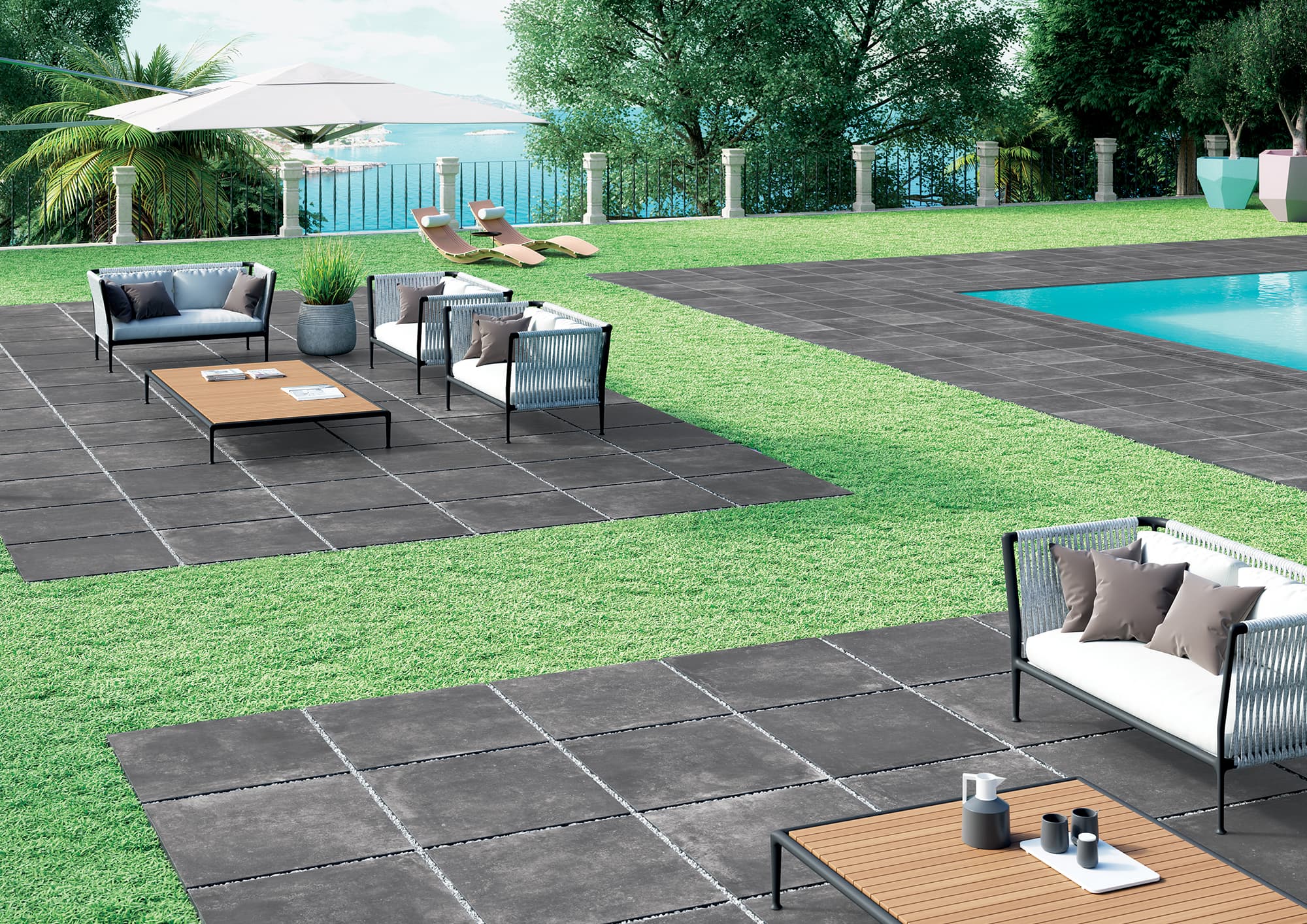 Blue Evolution returns the charm of this famous stone in three colours with intense yet natural hues, in two surface finishes and in sizes ranging from 20×20 to 80×80. The thicknesses (10 mm and 20 mm) allow for maximum freedom and aesthetic consistency in the design of both indoor and outdoor floors. The high technological quality of our porcelain stoneware reproduces the most significant colour and graphic characteristics of the natural stone taken as an example, while guaranteeing resistance, ease of cleaning and durability.