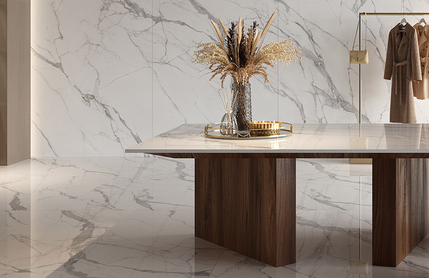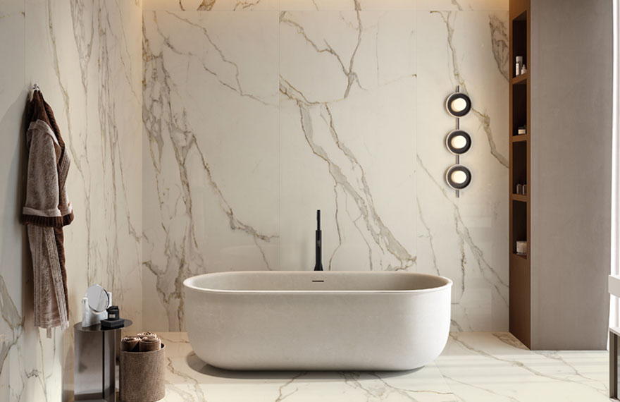 The timeless elegance of fine marbles, transformed into porcelain stoneware